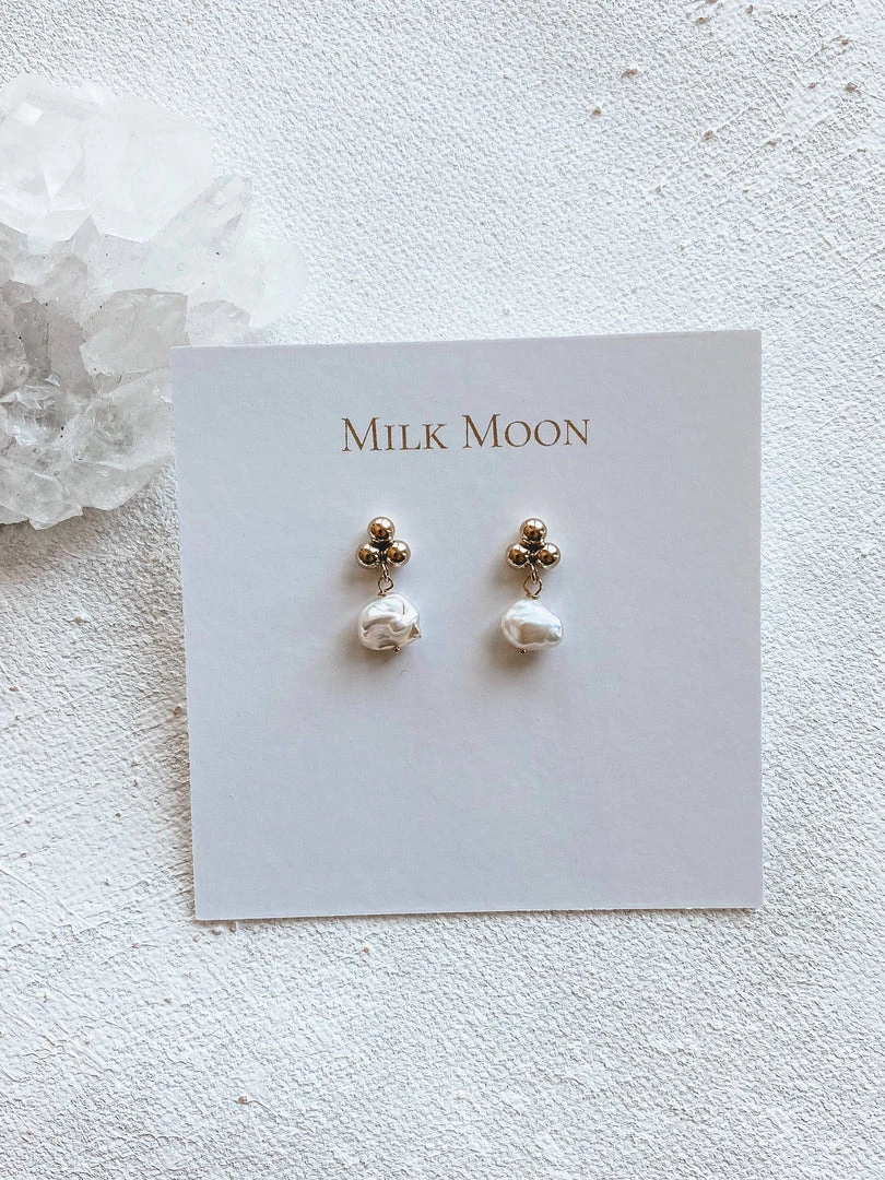 Materials Used: 14kt gold-fill setting and posts, freshwater pearls.