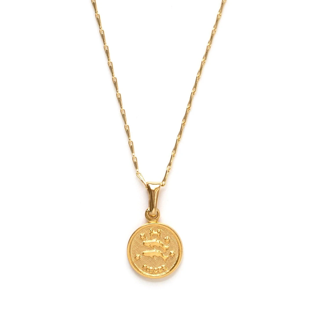 Adorable 1 cm diameter vintage zodiac medallions on 16″ + 2″ barley chain.
