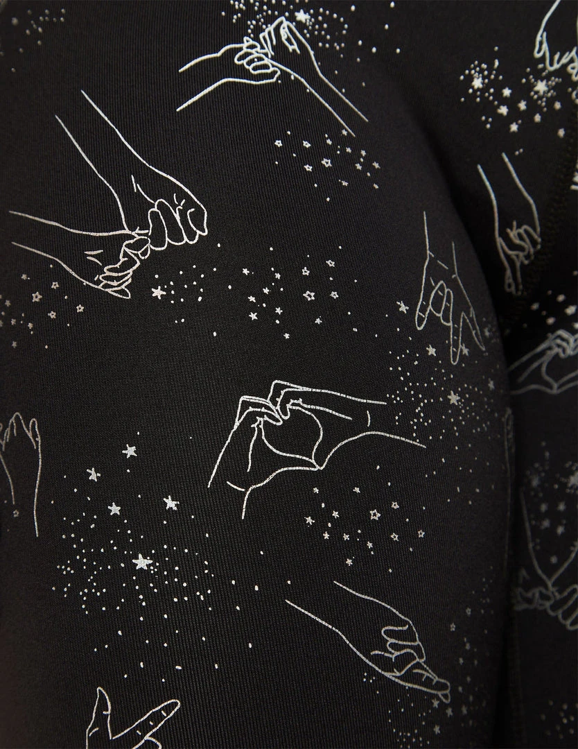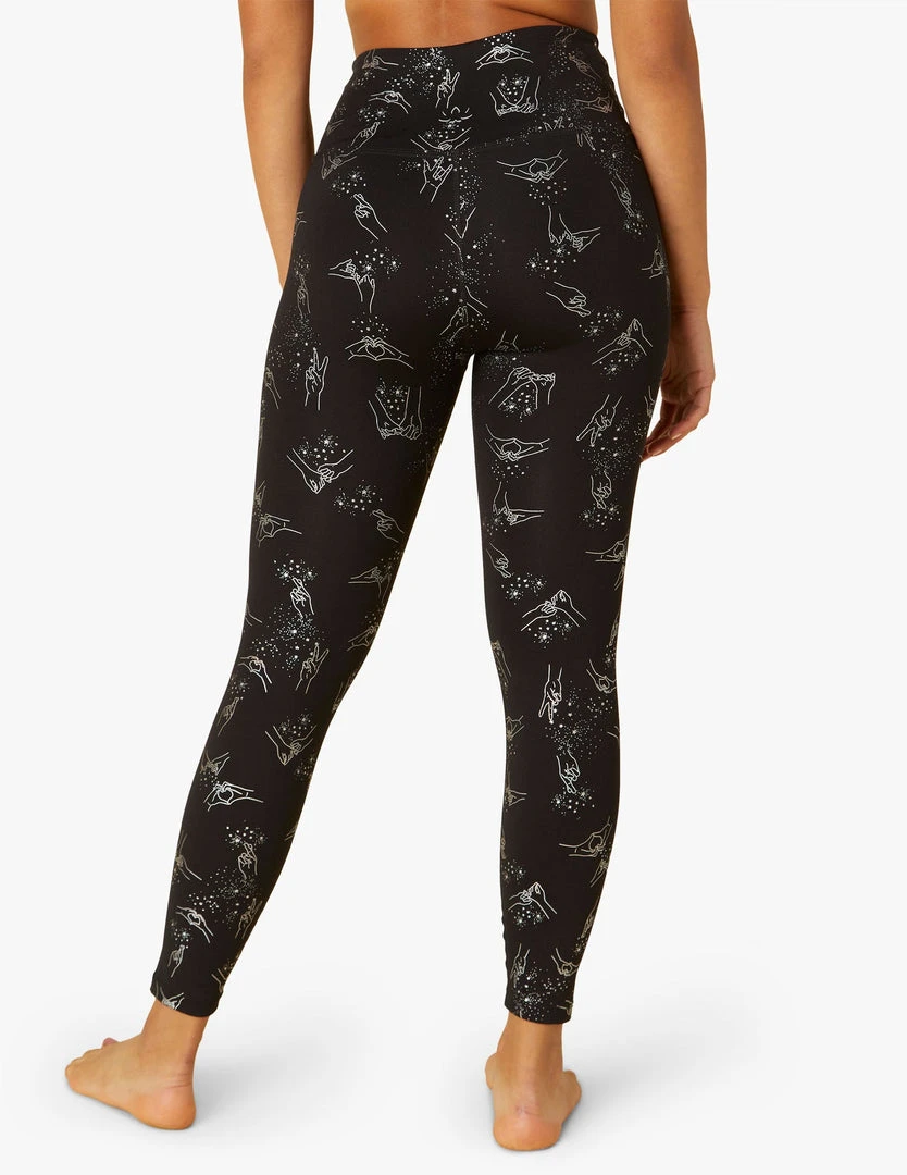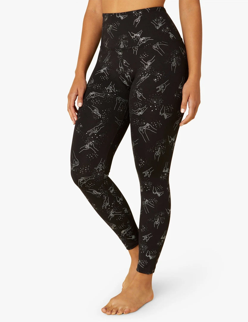 Think of these leggings as a comfy little reminder to love yourself, your body, and your whole life. Our bestselling legging, with 5″ high rise waistband, midi length, and light compression featuring a shiny foil print.