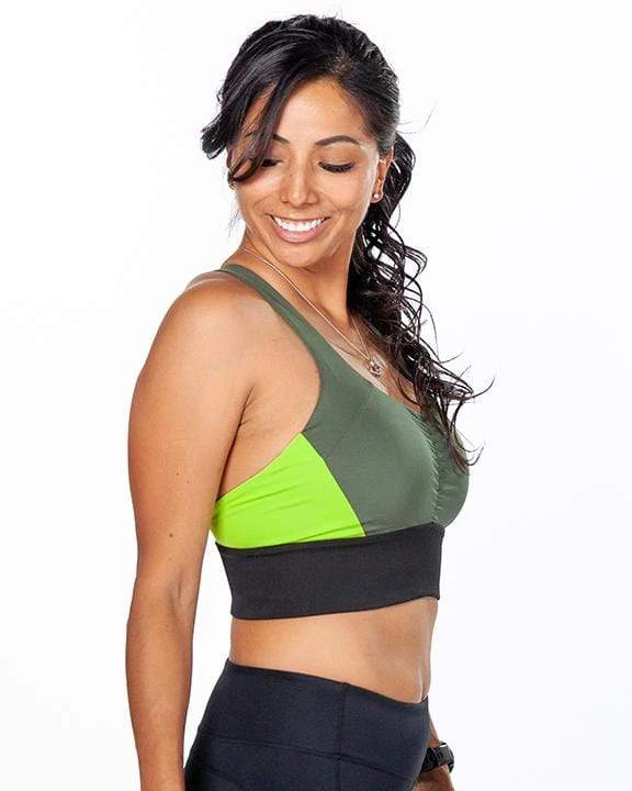 Sport-ready support and feel-great fabrics make the Gametime the perfect sport bra for running and other high impact activities. The supportive, stretchy fabric is so soft you’d never guess it was made of recycled water bottles — but it is! An extra wide support band prevents chafing, and adjustable stretch straps are the perfect width to support with style. Other good things: center front ruching prevents uni-boob, and removable pads offer optional shaping.