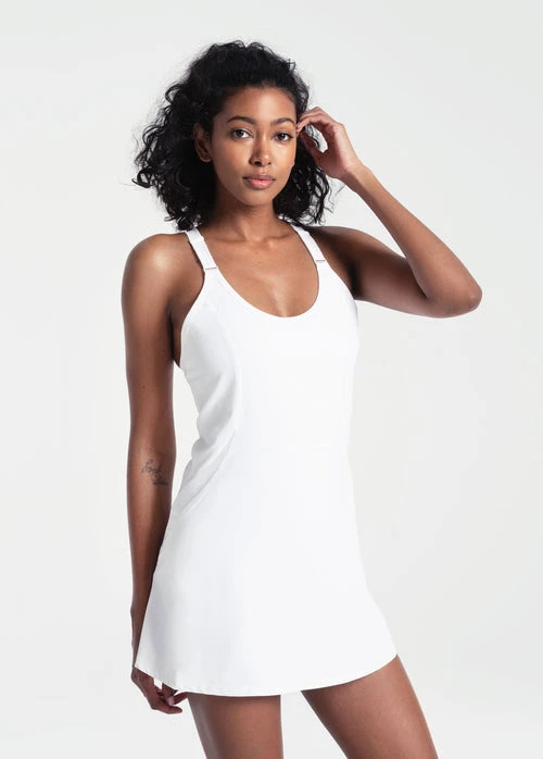 Feminine and functional, the Cycle Dress features an inner jumpsuit with pockets for extra control and comfort and mesh side panels for optimal mobility. Made with stretchable and airy fabric, this bestselling activewear dress now has adjustable straps so you can keep going from warm up to cool down.
