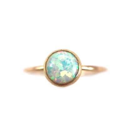 This ring has a 6mm synthetic opal sits in a bezel cup.