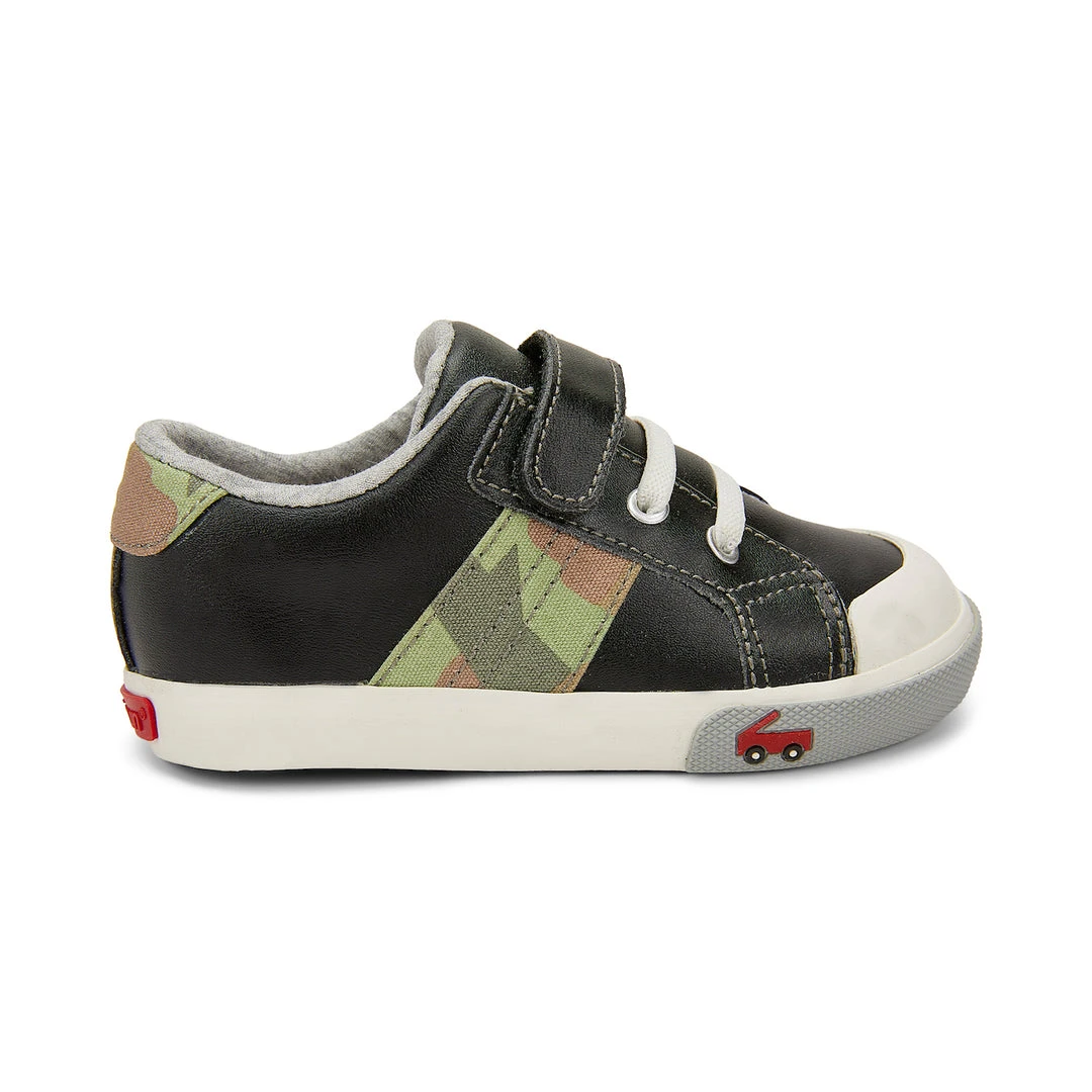 The classic Lucci sneaker made of black leather with canvas camo accents. Includes 100% leather lined removable molded footbed for healthy foot climate. Rubber toe cap for added protection. Â