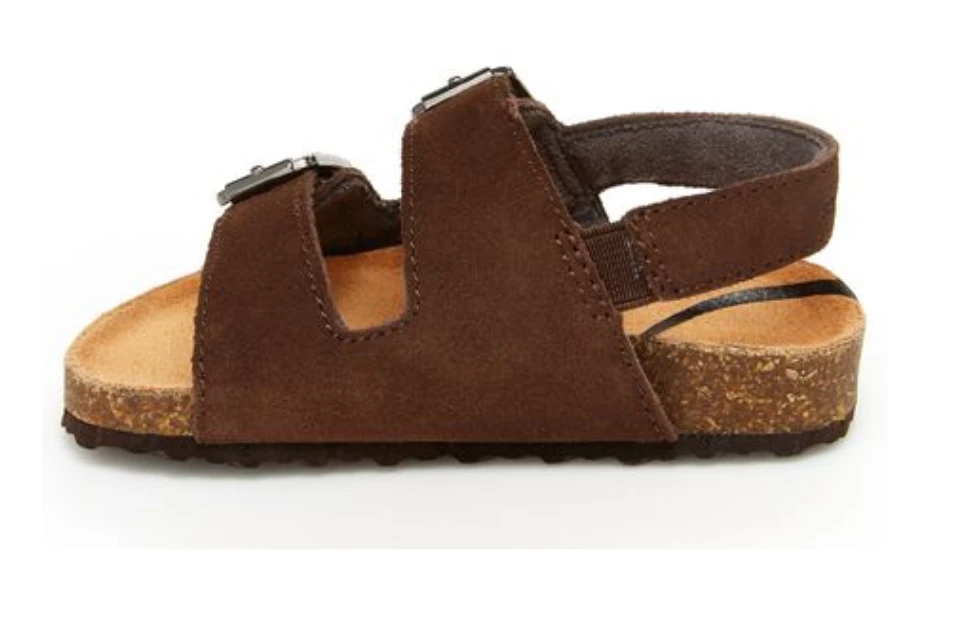 - Open-toe sandal made with premium suede and textile with double hook & loop closures for easy on/off