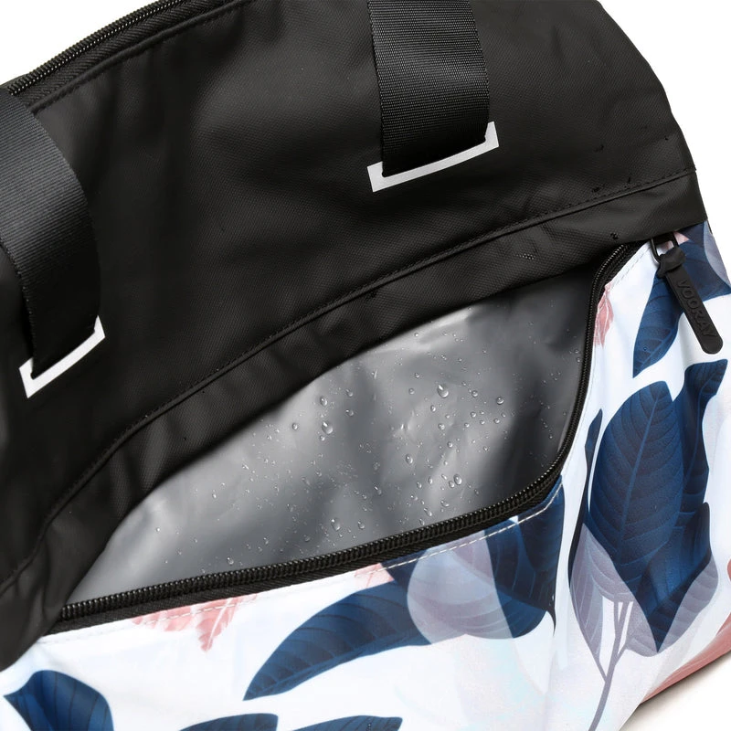 100% polyester with a weather-resistant top and PU base. With every feature of this bag, it creates a modern, versatile and durable duffel bag.Â
